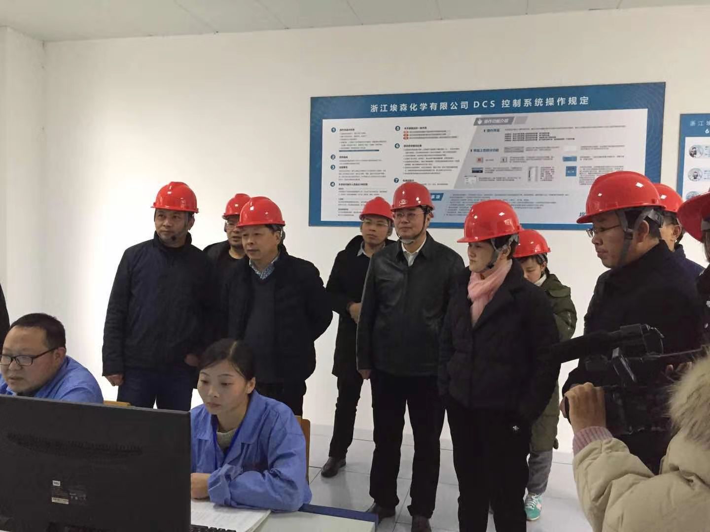 王天仁副市長聽取了氯化生產監控流程、尾氣吸收監控流程介紹后,對浙江埃森智能化管理安全生產工作表示肯定。