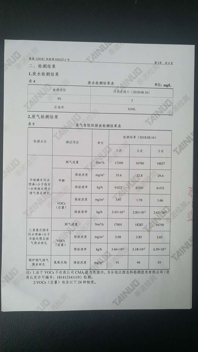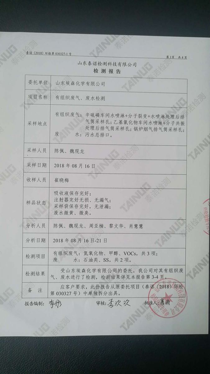 山東埃森化學(xué)有限公司有組織廢氣、廢水檢測內(nèi)容公示
